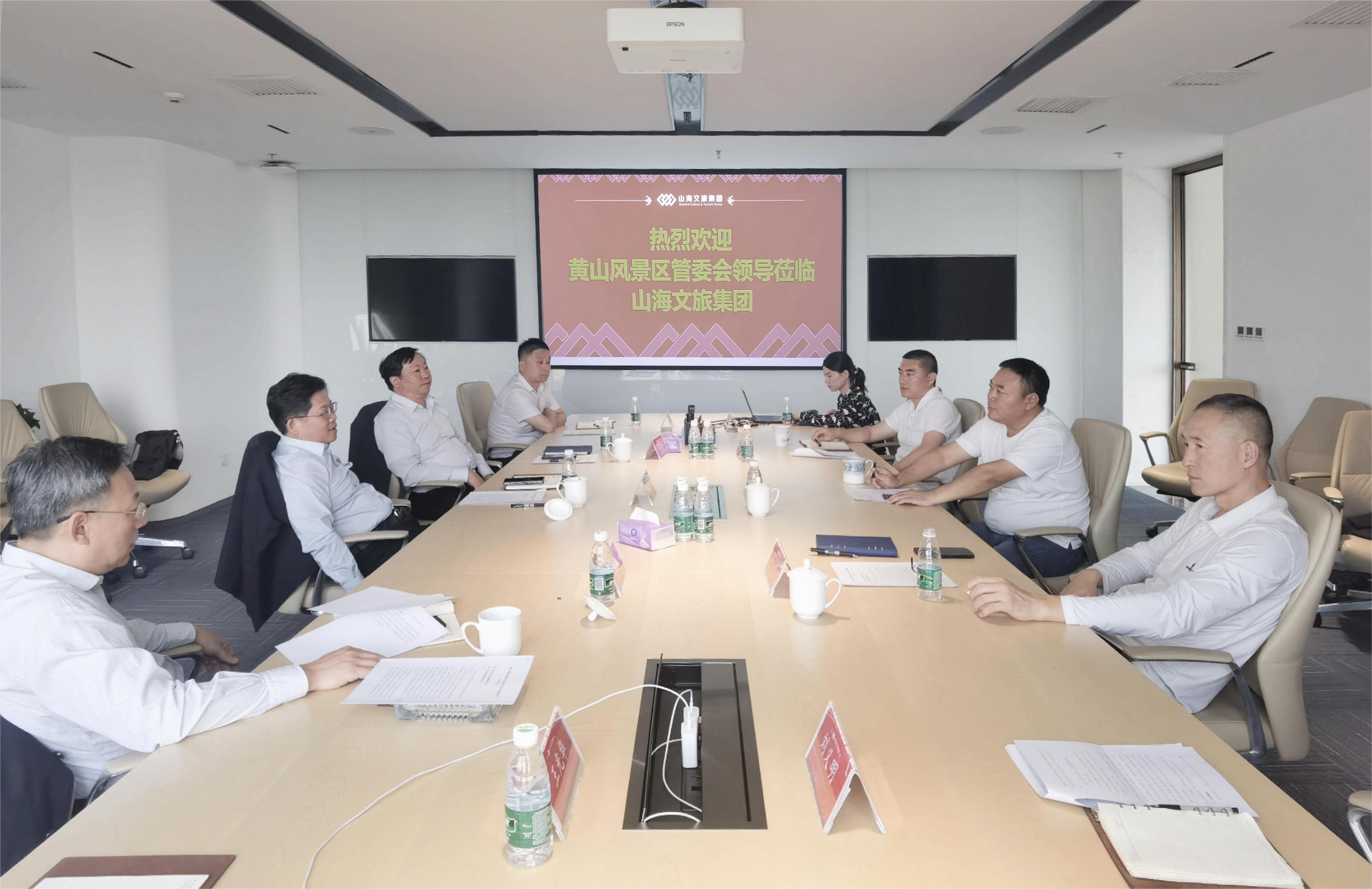10月17日,黃山風景區管理委員會黨工委副書記雷連本一行到訪北京山海文旅集團,集團董事長王高超會見並舉座談。