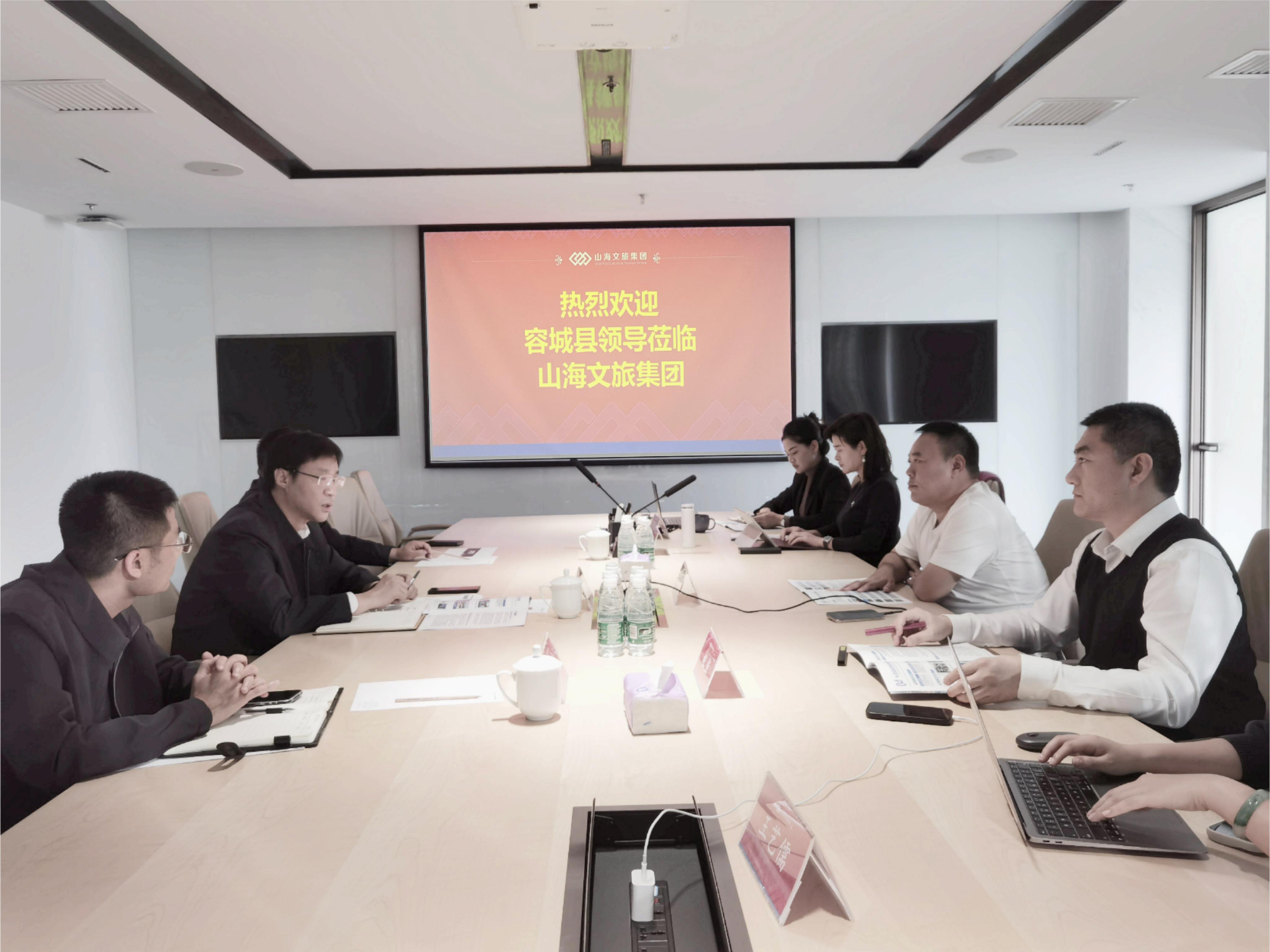 11月9日,雄安新區容城縣委副書記、縣長武彥斌一行到訪北京山海文旅集團,集團董事長王高超會見並座談。