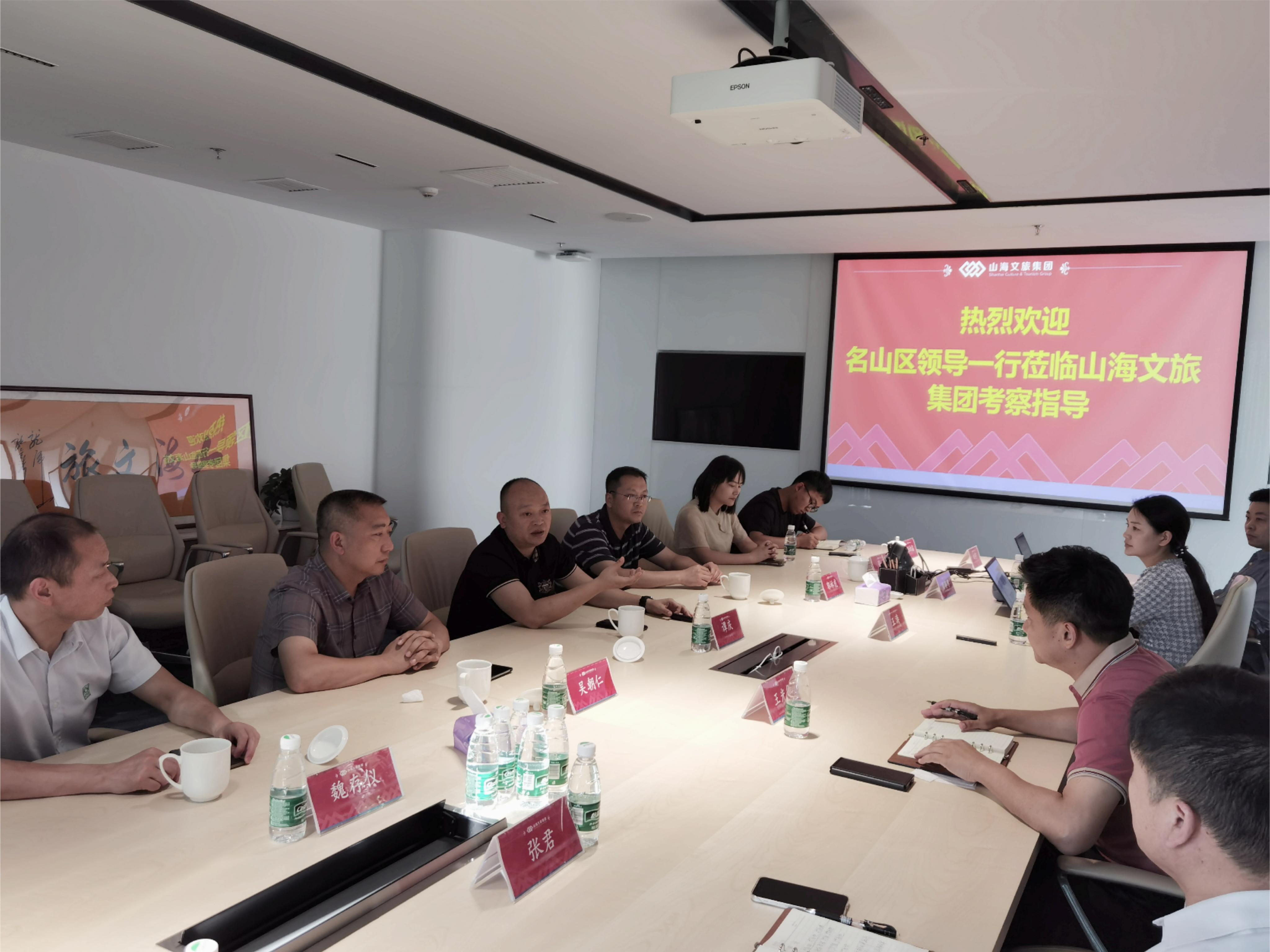 6月14日下午,四川省雅安市名山區副區長譚慶一行到山海文旅集團考察交流,集團執行總裁王濤、副總裁王光華接待來訪並舉行座談會。