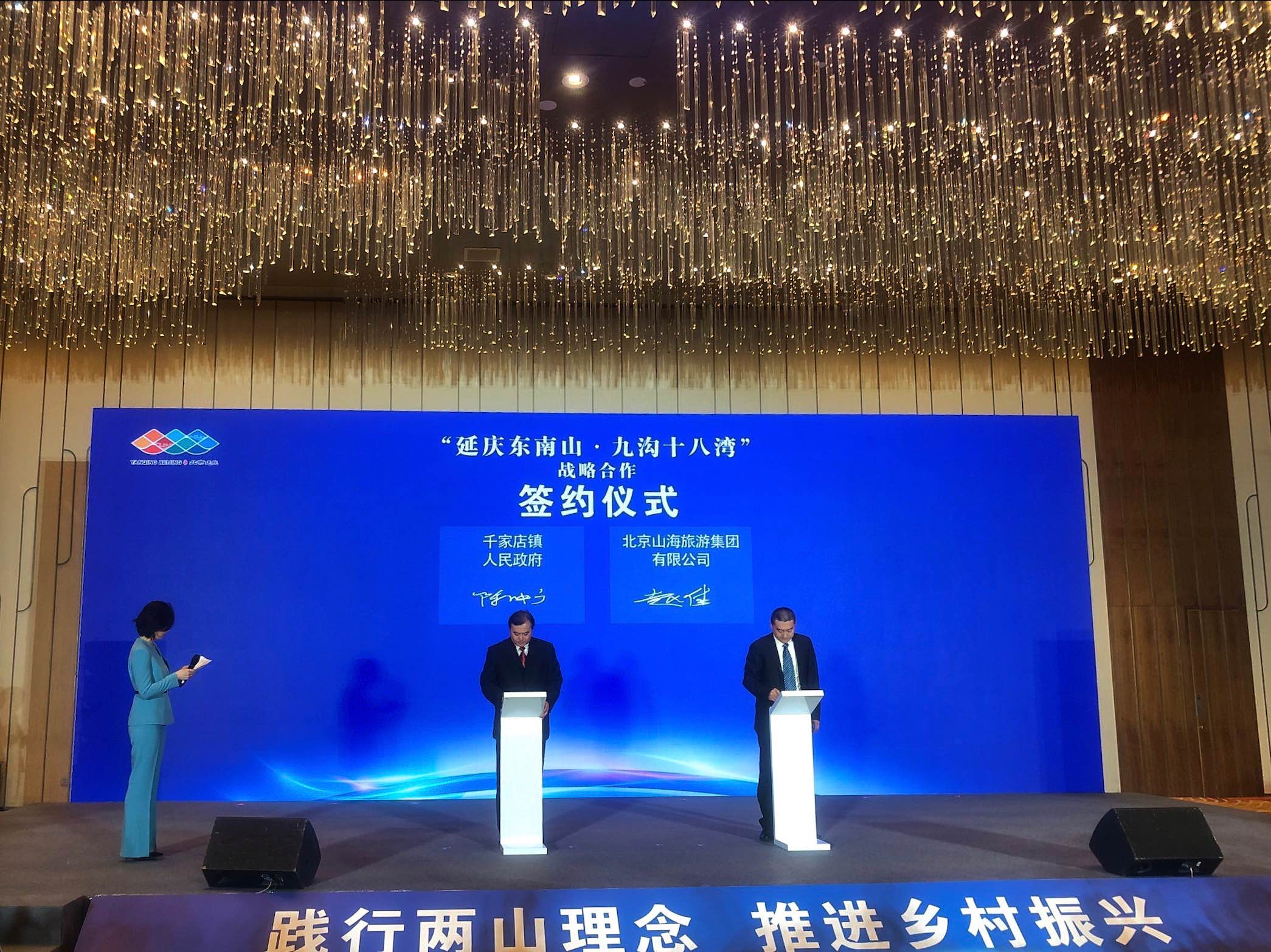 3月28日,北京山海文旅集團總裁趙佳與集團副總裁何時印,赴延慶應邀參加以“延慶東南山·九溝十八灣”為主題的鄉村振興品牌推介會,並與北京延慶千家店鎮就溝域資源特色、村莊發展方向及合作模式等達成了合作意向。
