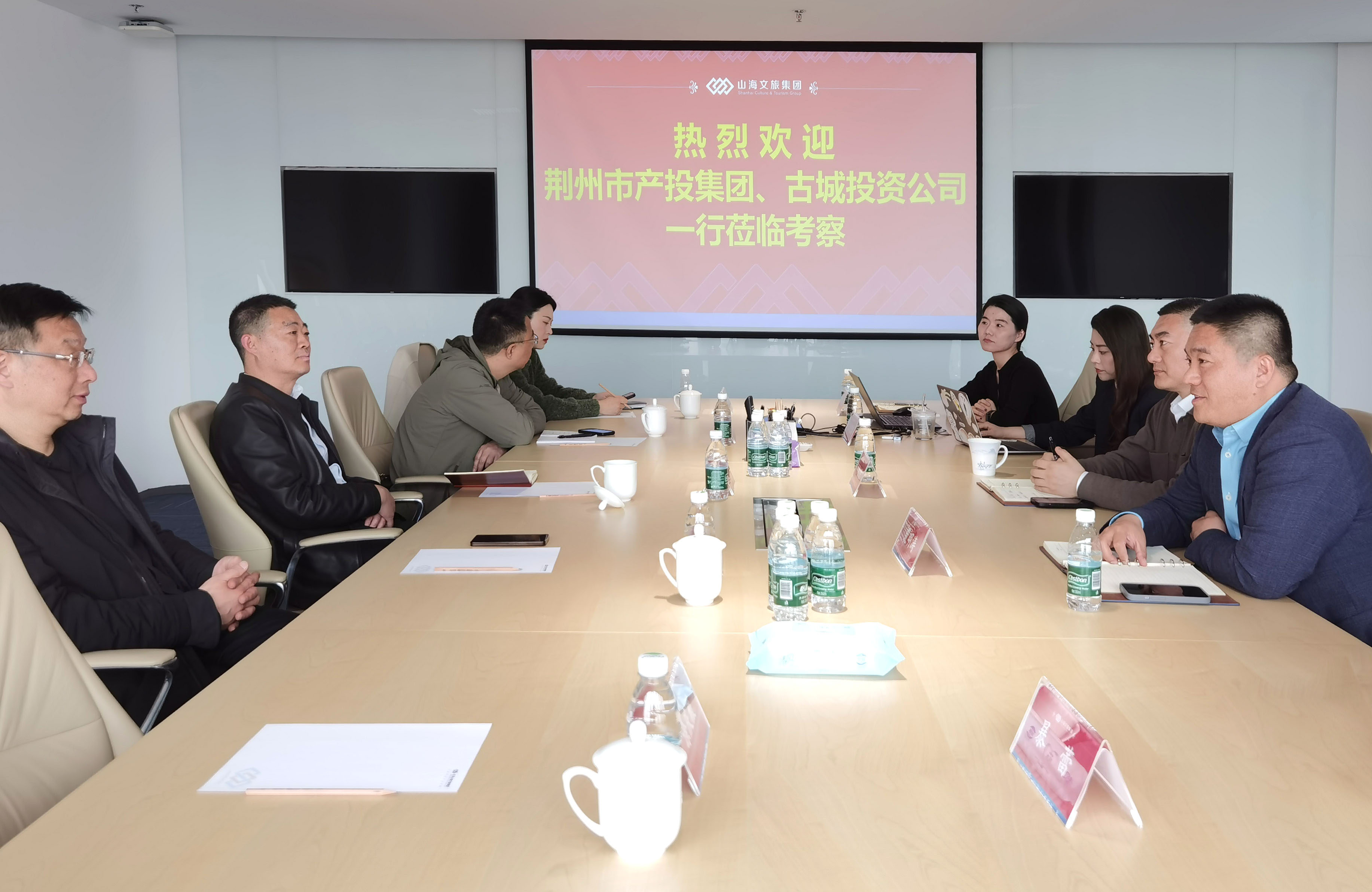 3月21日,荊州市產投集團副總經理黃軍枝、古城國投公司總經理徐波一行到訪山海文旅集團,集團總裁趙佳接待並座談。